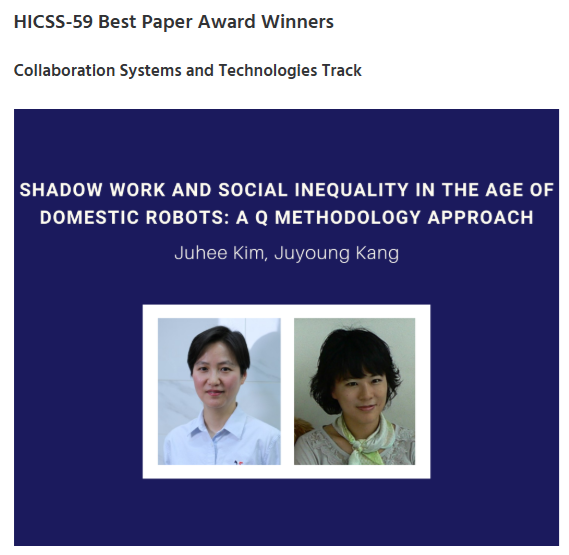 교신저자로 연구에 함께한 강주영 교수(경영인텔리전스학과)는 “2000년 이후 이어지지 못했던 한국인 저자팀의 HICSS ‘베스트 페이퍼’ 수상 기록을 제자와 단둘이 다시 쓰게 되어 감회가 남다르다”며 “앞으로도 AI와 디지털 전환이 만들어내는 사회적 변화를 학문적으로 깊이 있게 탐구해 나가겠다”라고 전했다.