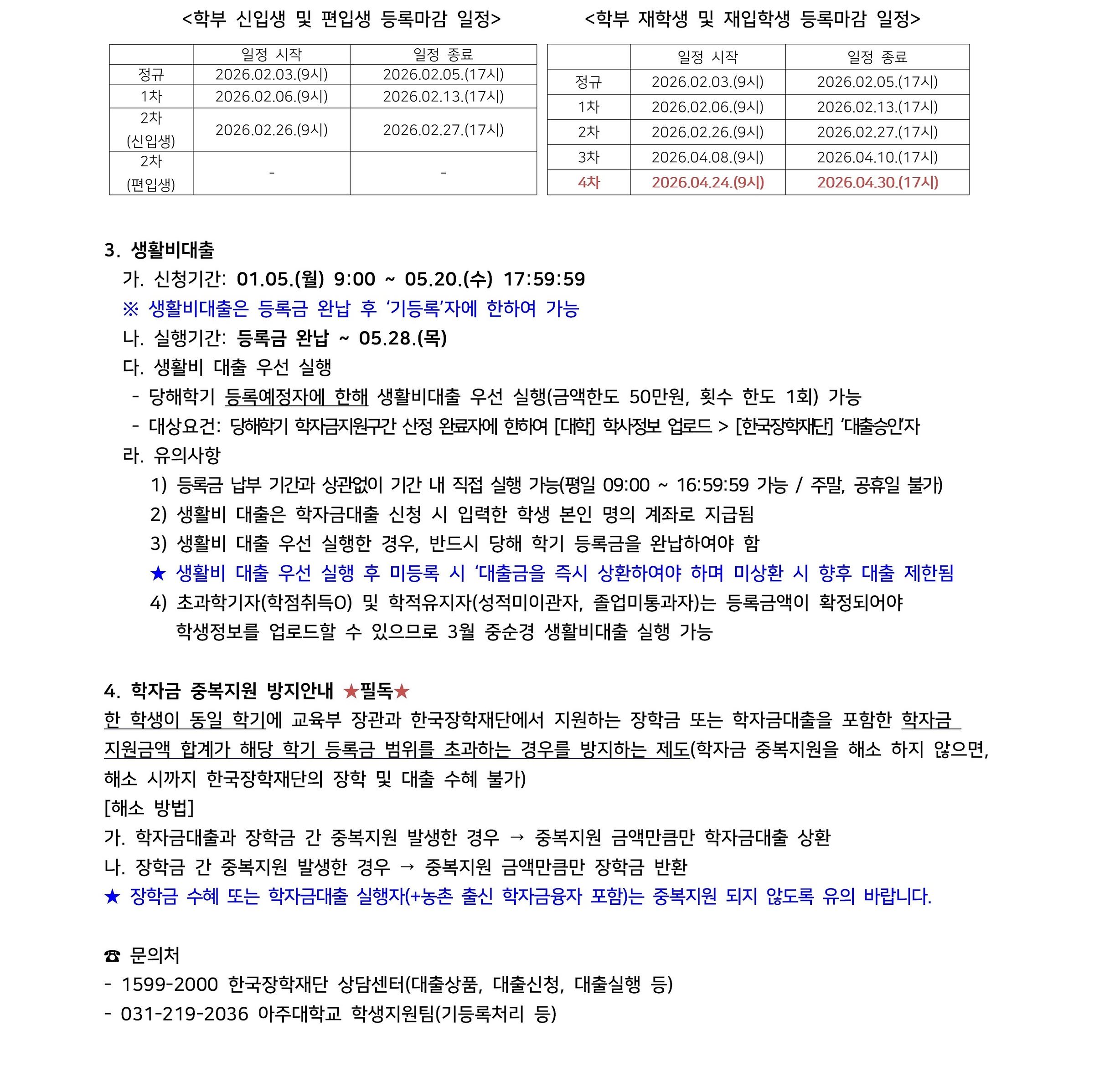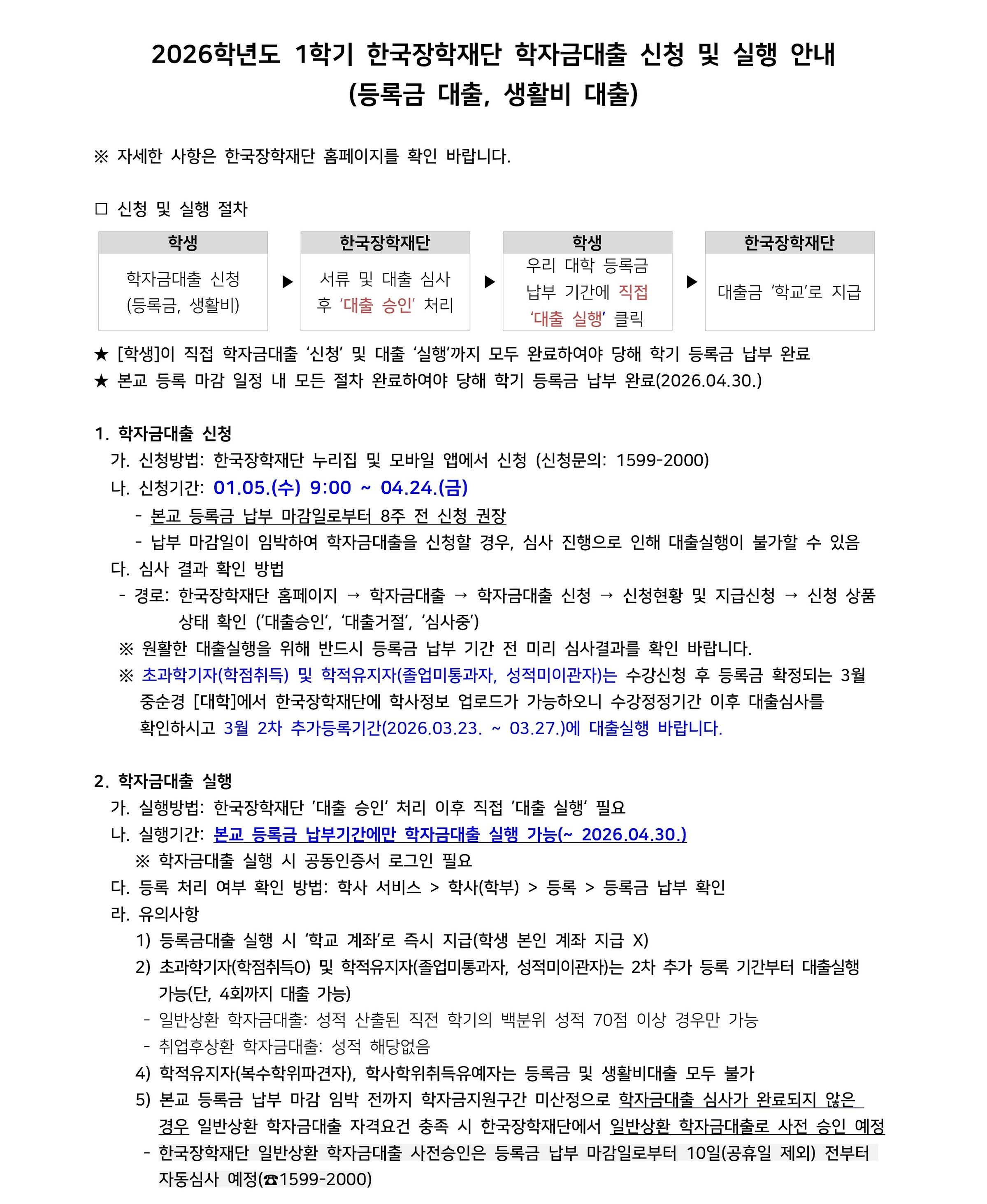 [장학] [학자금대출] 2026-1 한국장학재단 학자금대출 신청 및 실행 안내(학부생)