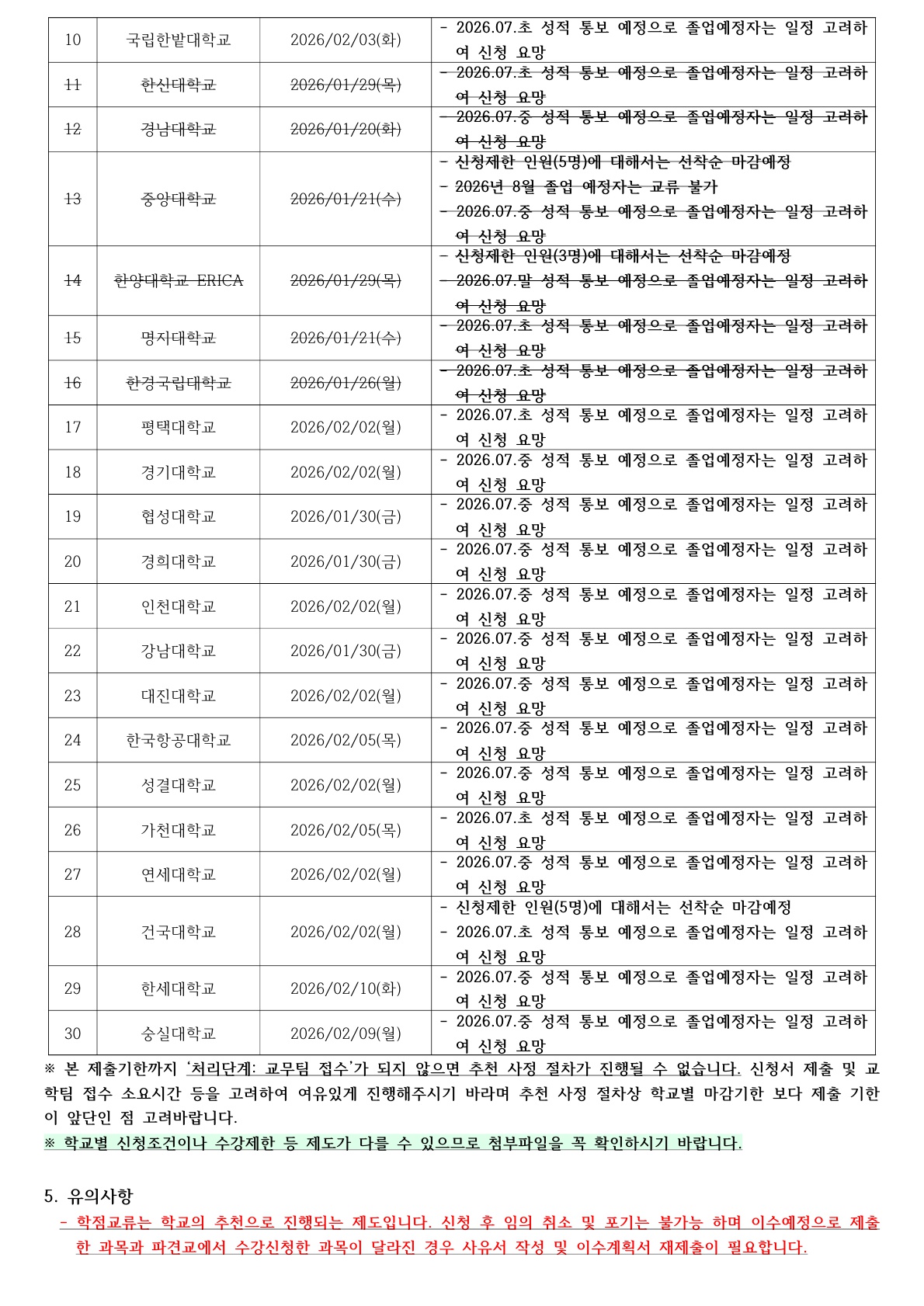 [학사] [학부/학사과정] (26.01.30.) 2026-1학기 국내대학 학점교류 신청 안내