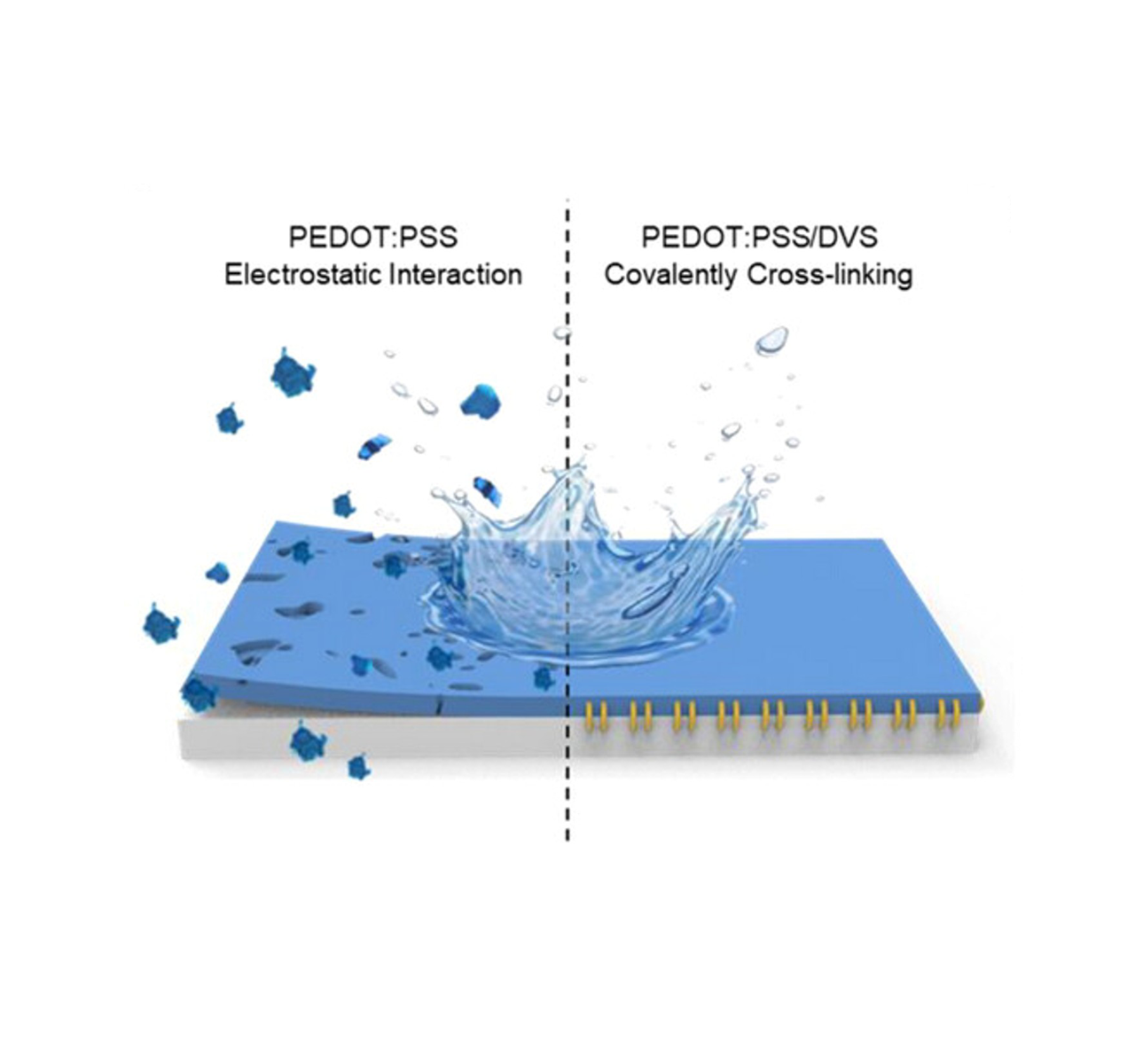 아주대학교 윤태광 교수(응용화학과·대학원 분자과학기술학과, 사진) 공동 연구팀이 반복적인 세척에도 안정적이고 땀과 같은 소량의 수(水)자원만으로도 전기 생성이 가능한 자가발전형 웨어러블 시스템을 개발했다.이번 연구 성과는 국제 저명 학술지 ‘Advanced Science’에 ‘Wearable PEDOT:PSS/DVS-coated Yarn-type transpiration-driven Electrokinetic Power Generator with High Power Efficiency and Water Stability’라는 제목으로 게재됐으며 아주대 윤태광 교수가 책임 교신저자로, 중앙대 황병일 교수, 충북대 김한슬 교수, 스웨덴 찰머스 공과대학 에르강 왕(Ergang Wang)교수는 공동 교신저자로 참여했다.전도성 고분자인 PEDOT:PSS 소자는 음전하를 띄는 PSS 덕분에 양이온 흡착이 가능해 전기 생산 성능을 극대화할 수 있지만 PSS의 친수성 때문에, 수분에 대한 안정성이 낮다는 한계가 있었다. 이에 연구팀은 가교제로 사용되던 EG(Ethylene glycol, 에틸렌글리콜) 대신 DVS(Divinyl sulfone, 디비닐술폰)을 사용해 수소결합보다 강력한 공유결합이 가능함을 확인했다.가교제가 사용되지 않은 PEDOT:PSS 소자는 5번의 세척 후에 전압 및 전류 생산량이 초기 대비 0.87과 0.51%로 크게 낮아졌고, EG가 사용된 소자는 25.4와 16.1%를 보였다. 반면, 연구팀의 DVS가 사용된 소자는 54.8과 47.7%의 유지율을 보여 향상된 세척 안정성을 보였다.개발된 소자는 땀 농도의 전해질을 에너지원으로 사용하였을 때 최대 112µW/cm³의 전력을 생산할 수 있으며, 수 차례의 구김이 있고 난 뒤에도 성능은 안정적이었다. 25개의 소자를 직렬 및 병렬 연결하여 상용 캐패시터를 충전하였습니다. 충전에 성공하면서 인체의 땀을 이용한 자가발전형 웨어러블 시스템 활용 가능성을 보였다.윤태광 교수는 “이번 연구를 통해 전도성 고분자인 PEDOT:PSS의 수분 안전성을 획기적으로 향상함으로써 세척 가능하며 에너지 생성 성능이 우수한 섬유형 에너지 하베스팅 시스템을 개발했다”라며, “다양한 분야에서 응용을 통해 후속 연구를 계속 진행할 계획”이라고 전했다.이번 연구는 과학기술정보통신부·한국연구재단의 ‘해외우수연구기관 협력허브 구축사업’의 지원을 받아 수행되었다.(사진) 섬유형 에너지 하베스팅 시스템 개략도(사진) 지속적인 전기 에너지 생성 시스템